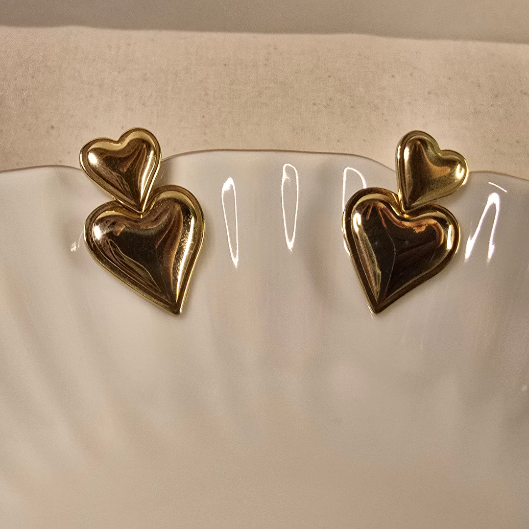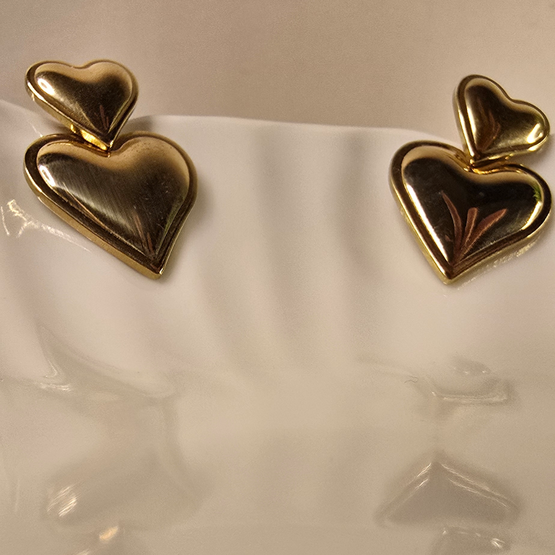 The Golden Double Heart Stud Earrings – A Touch of Love, Every Day