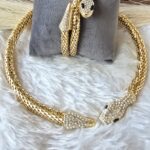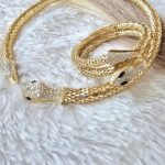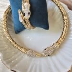 - Features a majestic gold-toned snake choker and coordinating bracelet.