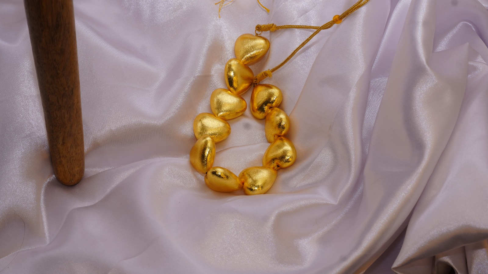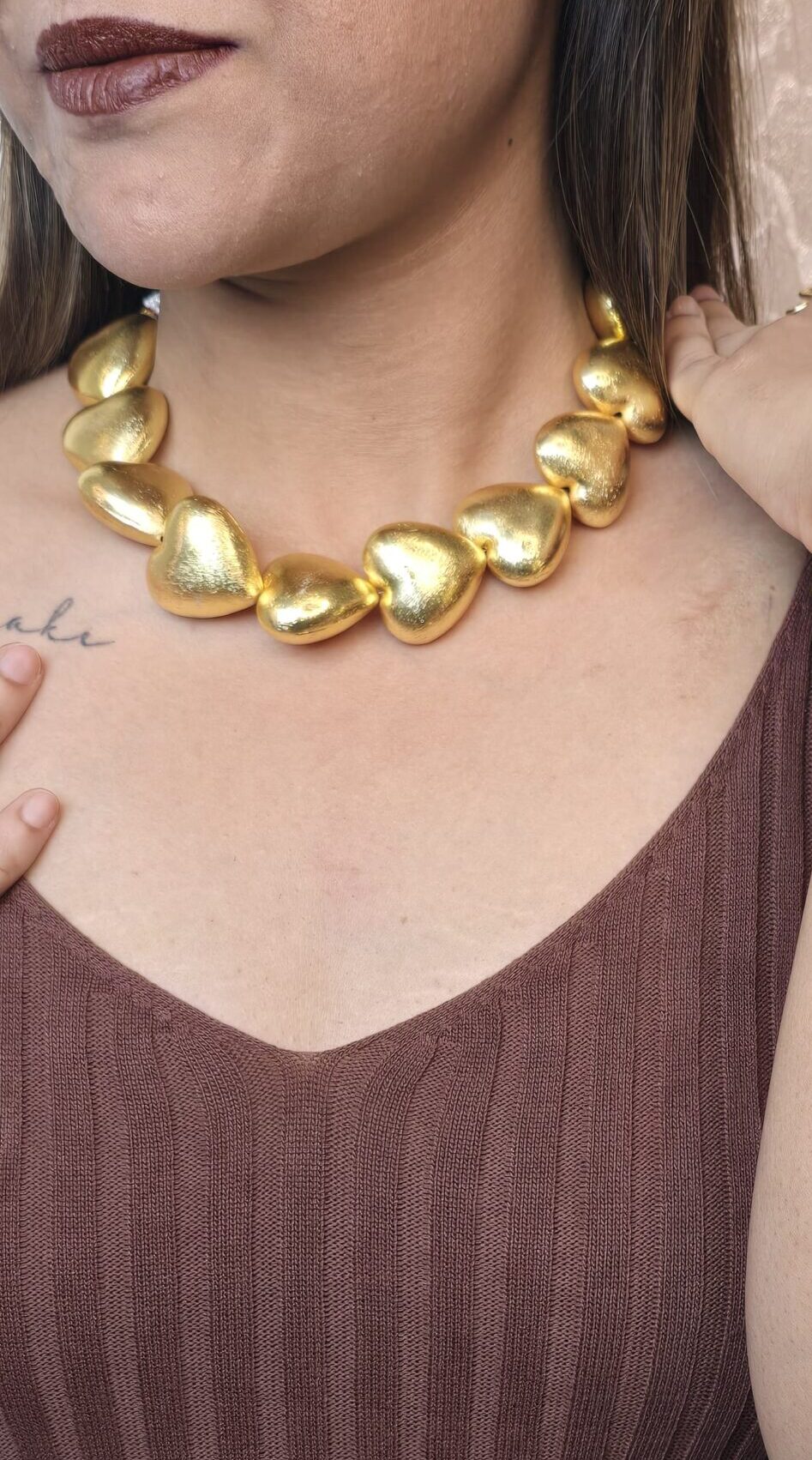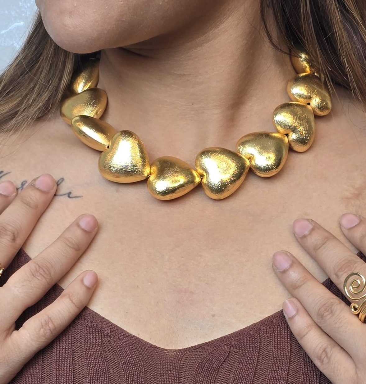 - Uniquely formed gold-toned heart nuggets with a textured finish.