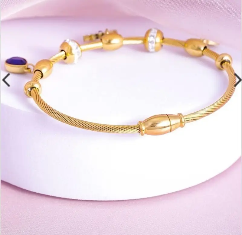 - Small crystals also accent some of the other beads on the bangle, adding extra sparkle.
