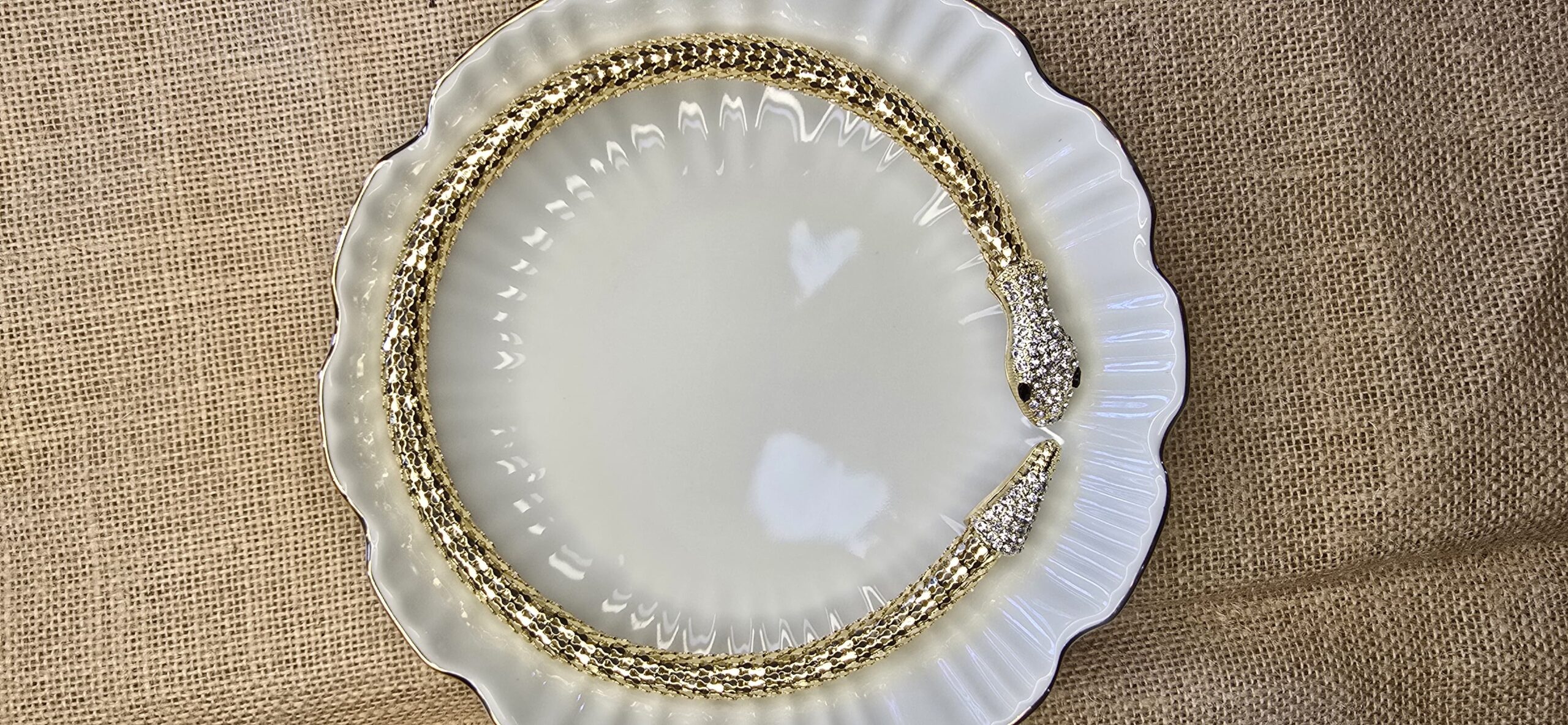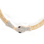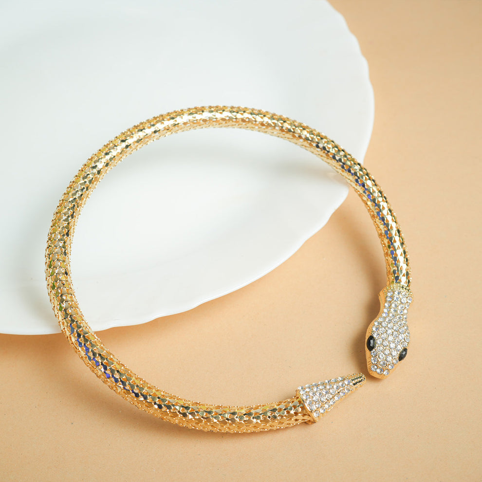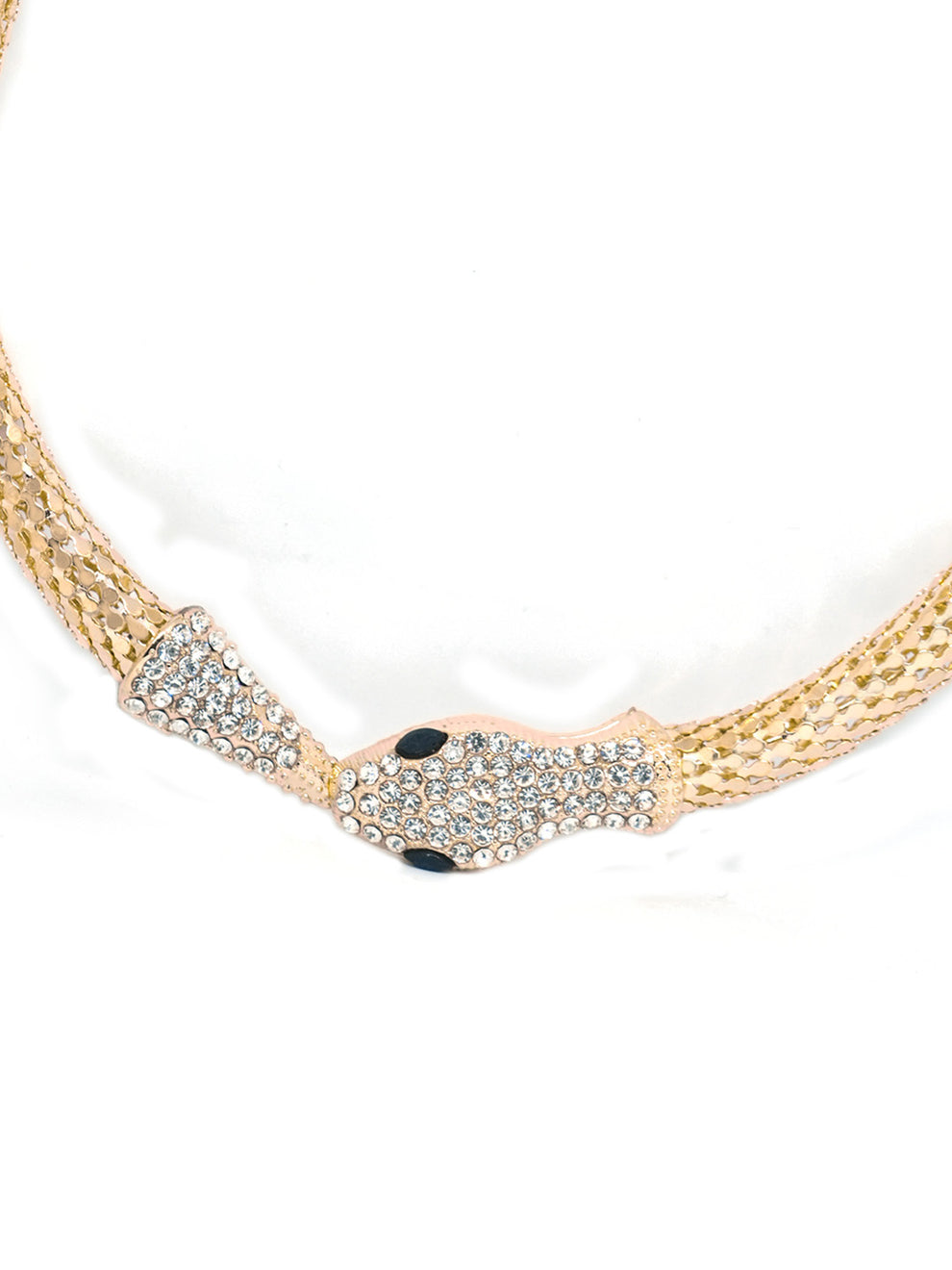 - Gold-toned snake choker with clear rhinestone embellishments.