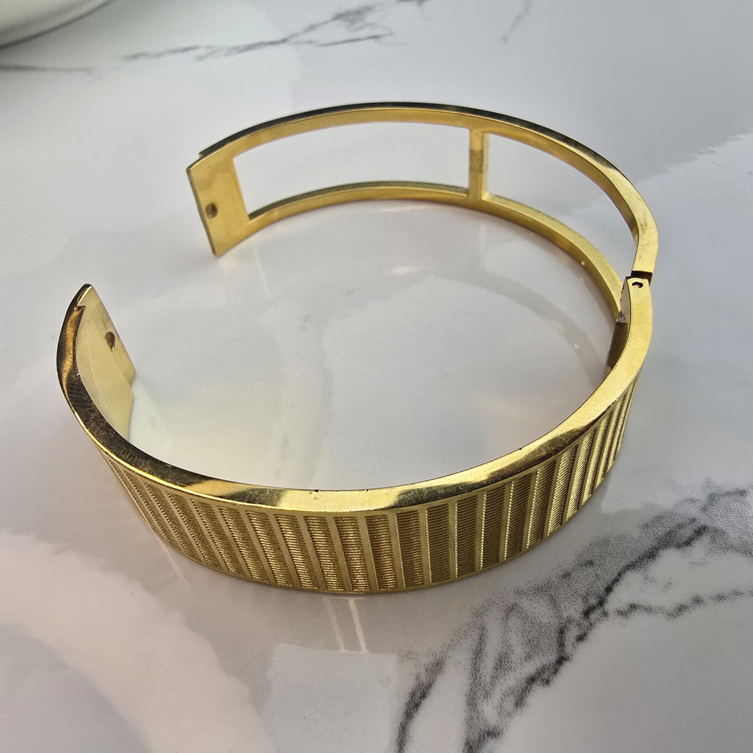 • An opulent and adaptable cuff, perfect for adding a touch of golden drama to any ensemble.