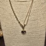 - Showcases a unique heart-shaped padlock design on a stylish gold-toned chain.