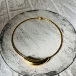 - Features a sleek, gold-toned rigid collar design with a smooth, curved central element.