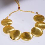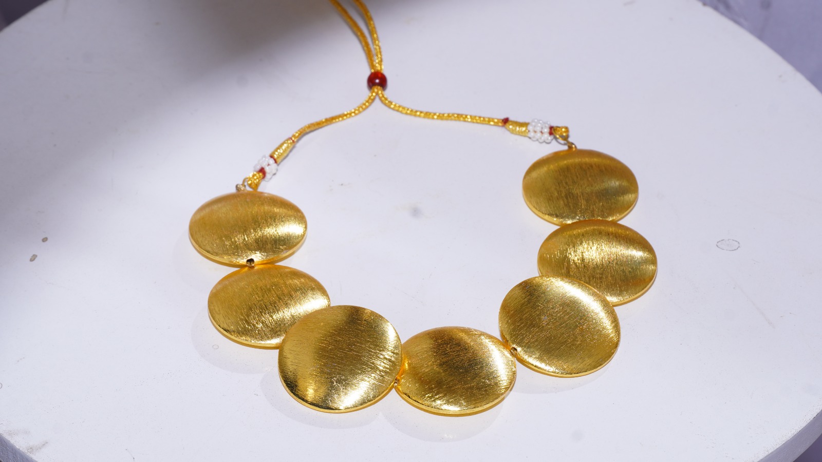 The Solaris Necklace. Bold golden discs make a striking statement.