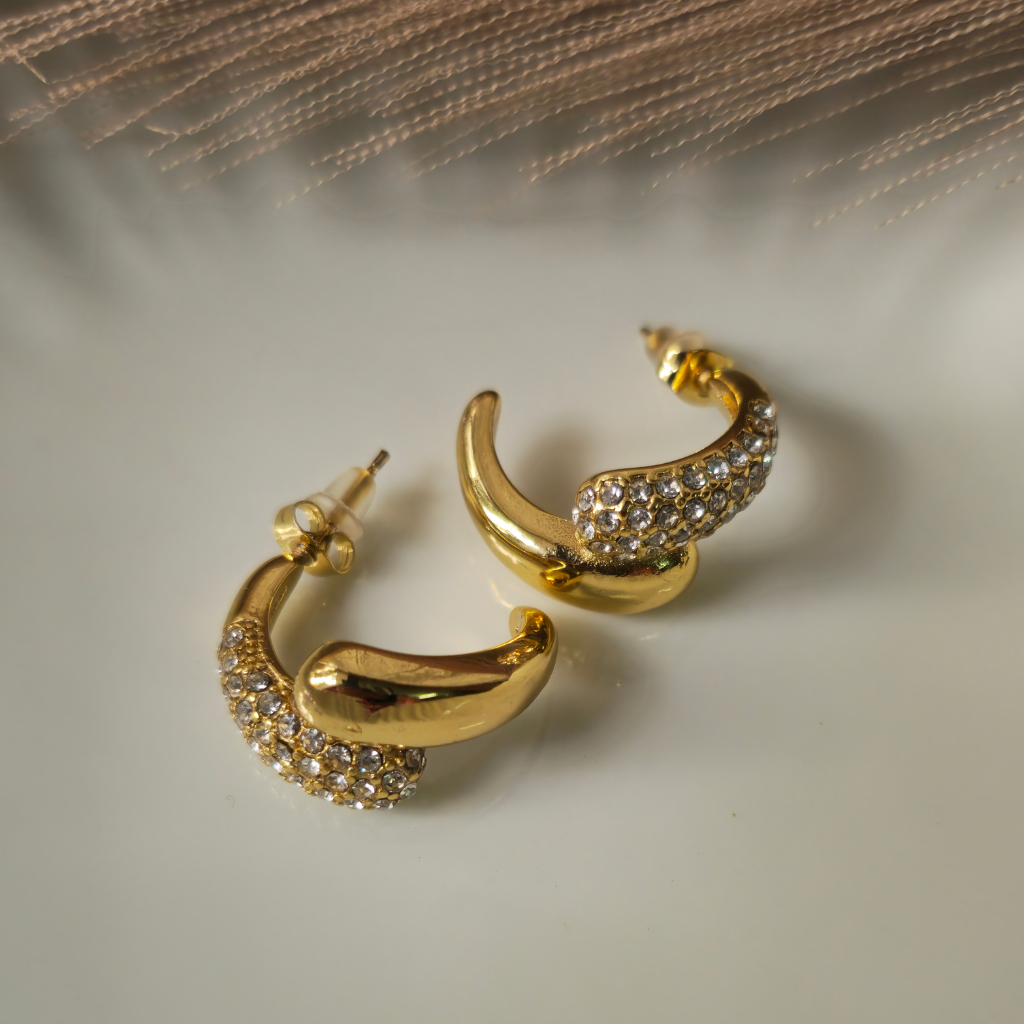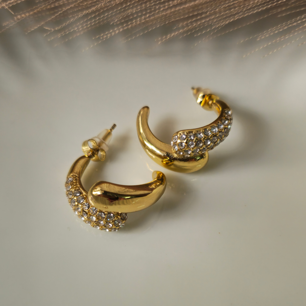 Sparkling curved hoop earrings. Modern glamour for any occasion.